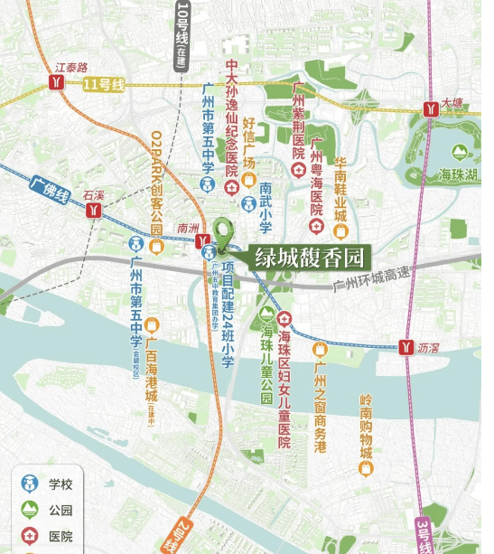 海珠湖距离项目约3公里,